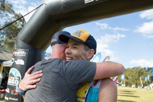 This section was again a gradual downward trail, feeling ok, but it was a more run / shuffle by this stage – then the last grind up the Settlement Camp ground, made easier with all the day trippers cheering us on – then turning the final corner was a decent crowd and lots of cheering – which was completely awesome! Reaching the finish line – Medal was put around my neck and fell into Those Guys arms. Feeling delighted – but shattered.