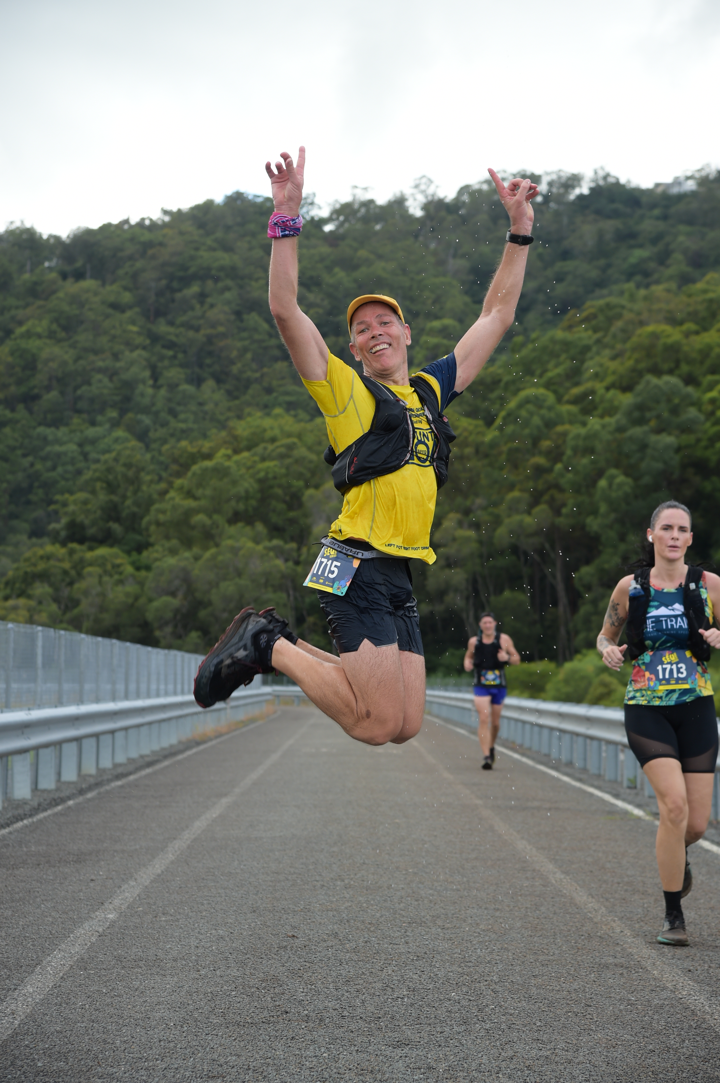 Finally, after what seemed forever, we were back up to the dam wall, and the last leg before the finish – fortunately the clouds had come over so it wasn't as hot and I managed to keep a reasonable run through to the end of the wall – with another jumpshot opportunity