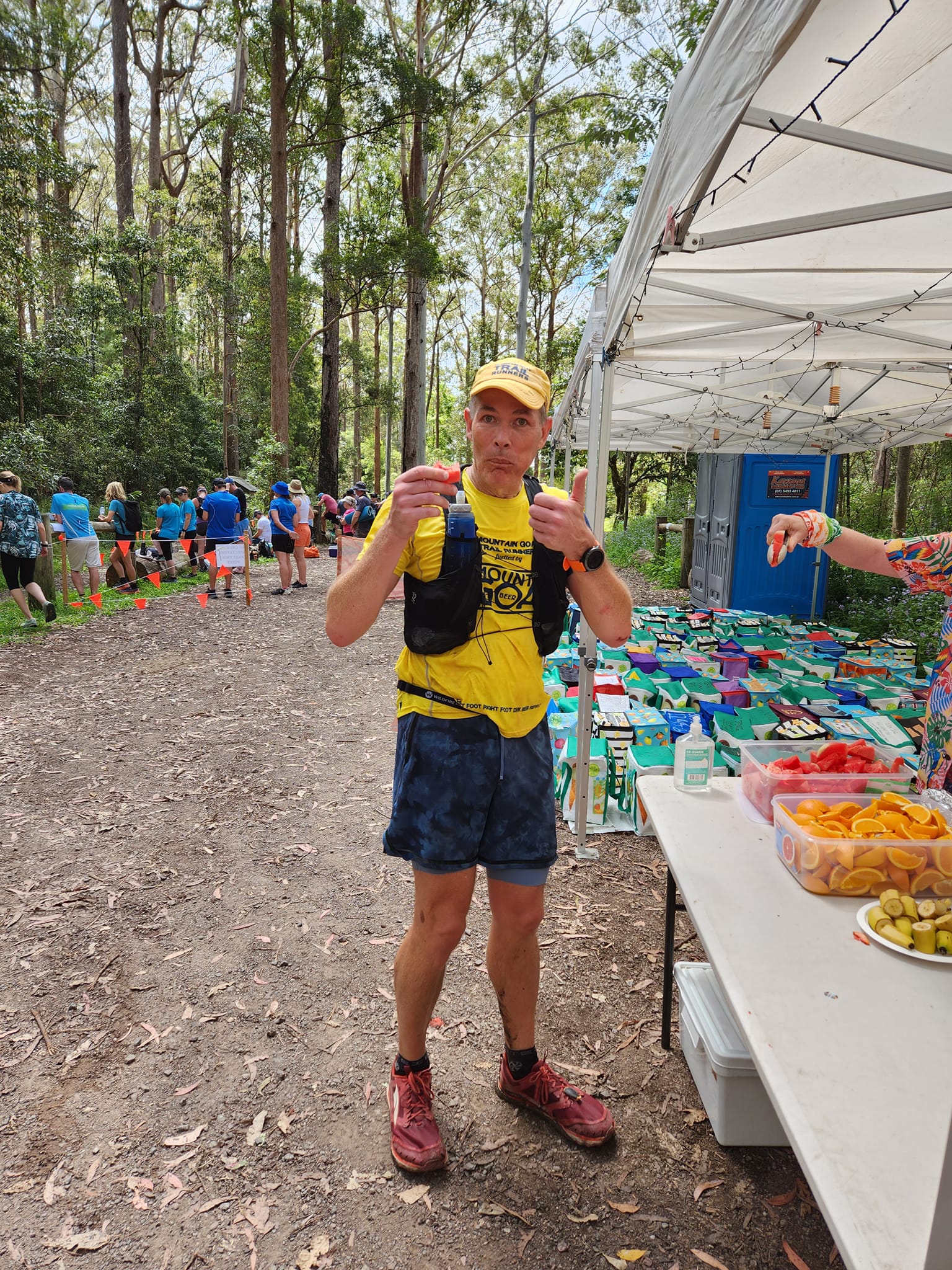 Aat about 19km was the first main checkpoint, stopping for a little soaking and a water top up as we were about to venture up The Bluff.