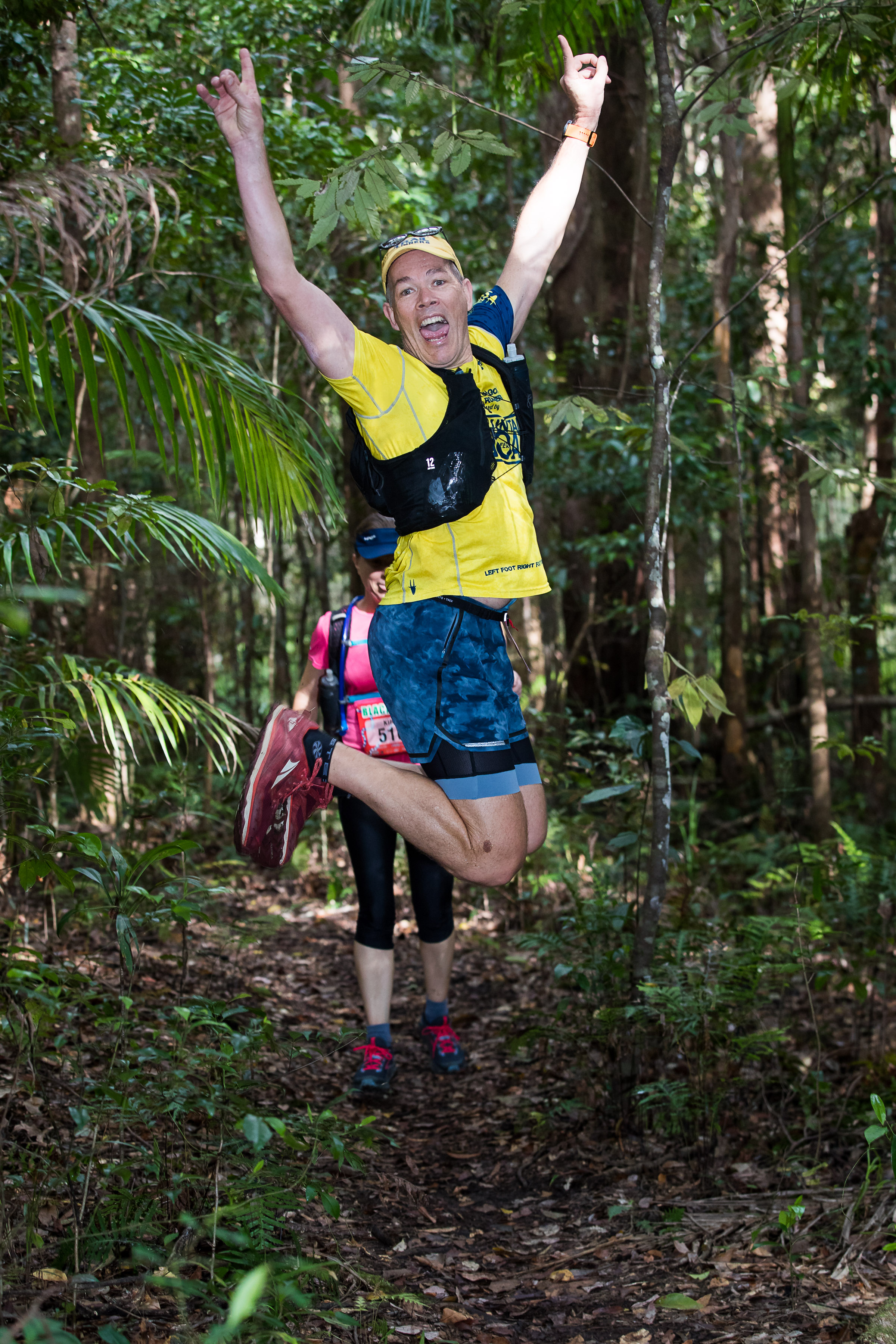 After about 3kms of road and breaking up the runners, we back in the lovely Blackall Range in the lovely Sunshine Coast Hinterland, with about 7kms of rolling downhills. I was running a similiar pace to Adele, so we agreed to run together for as long as felt ok for both of us. More about the pace and appreciation of the course – and someone else to take photos 🙂 Although the photographer snuck this one in…