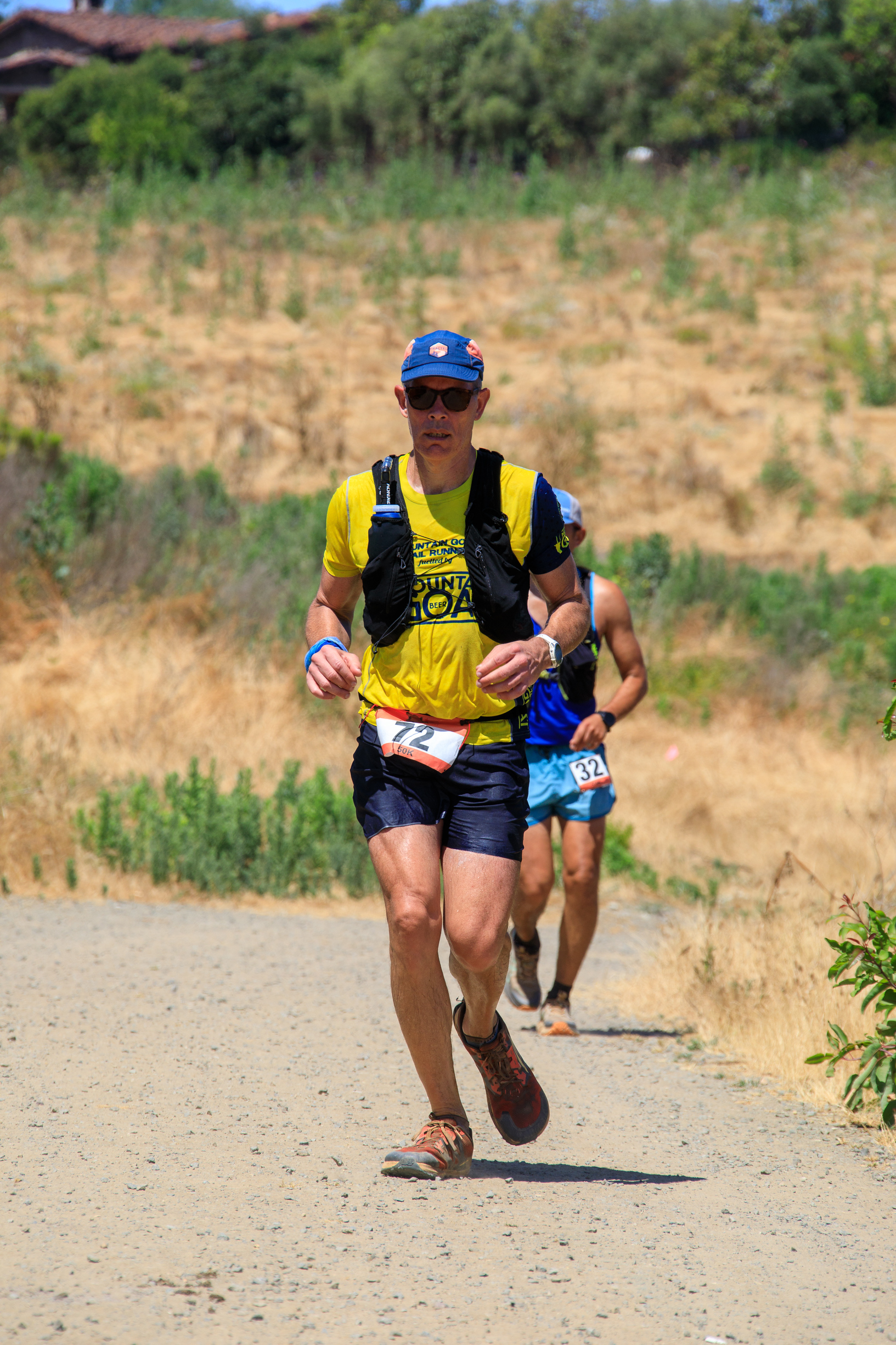 Now for the brutal section of the course. Not knowing the course profile too well, we were sort-of almost heading towards the summit and then would be heading home, but no. A big no, we had to take a turn which takes you almost back down to the lowest point of the course. Still trying to run where I can – it was so hot! Fortunately there was an aid station on the way back down to refill the water and take on some ice around the neck! Love my Buff!