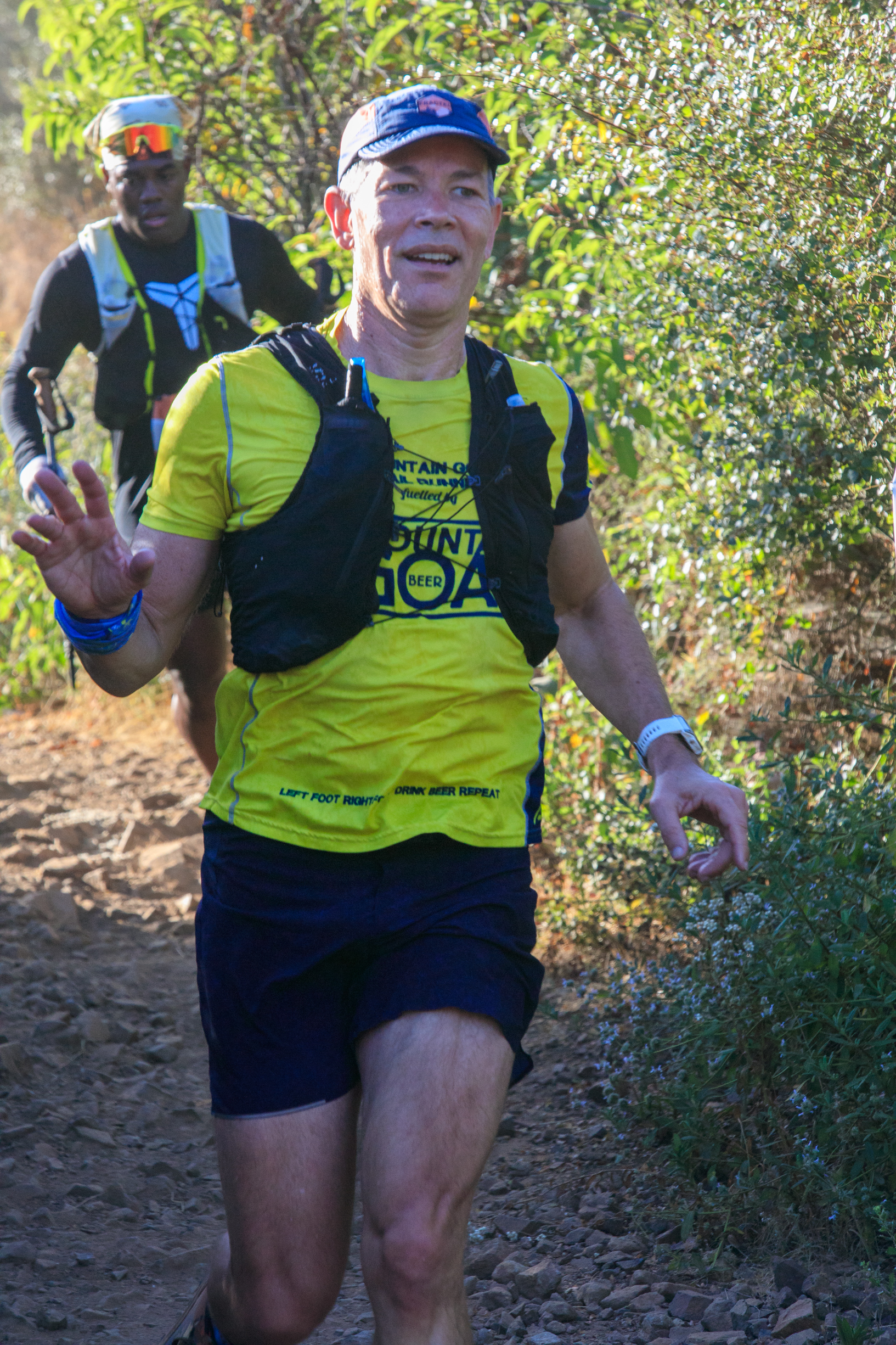 As we hit the 20km mark and an aid station, was an out and back. Was funny seeing the high spirits of every one coming back along the single track (probably because they knew they were in from of you), and then getting to the non event turn around point, then you were the one in high spirits pulling up the runners behind you.