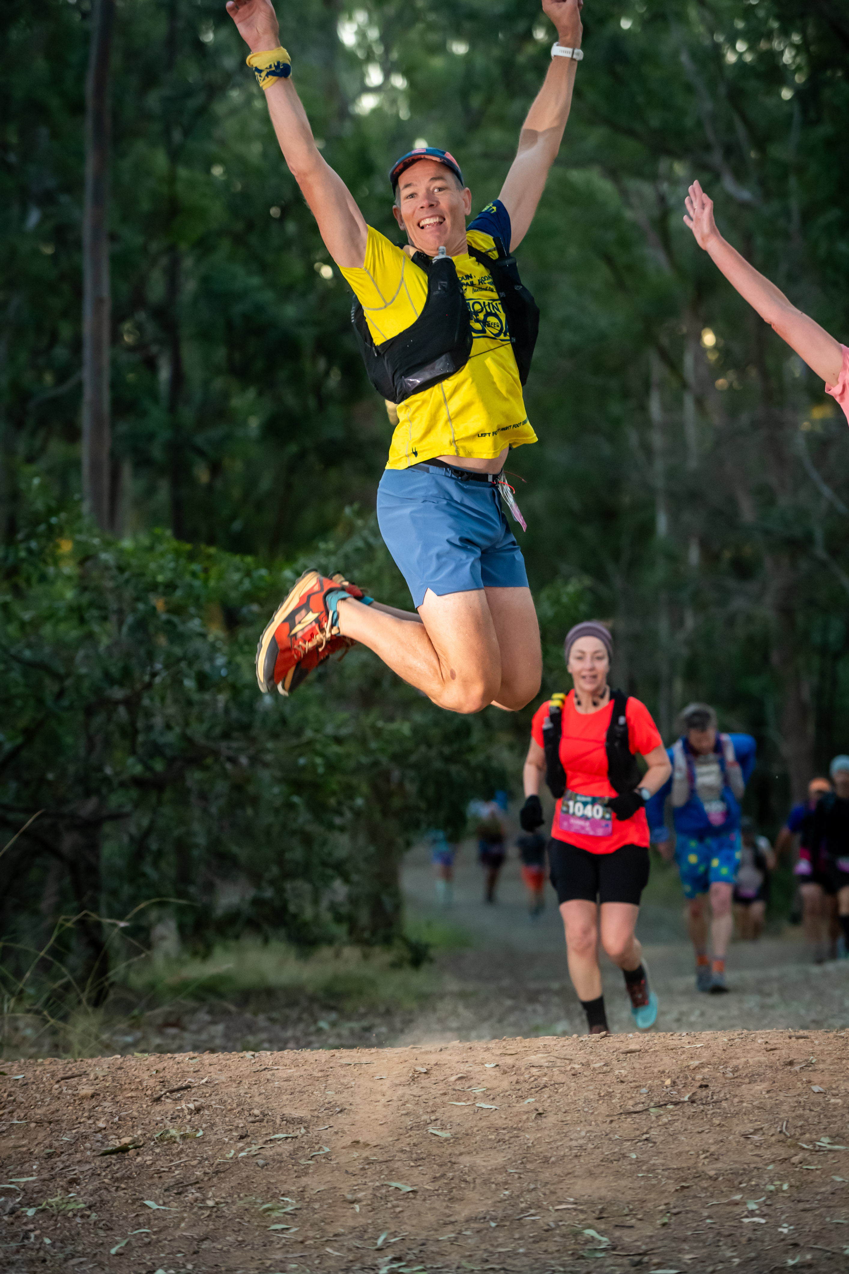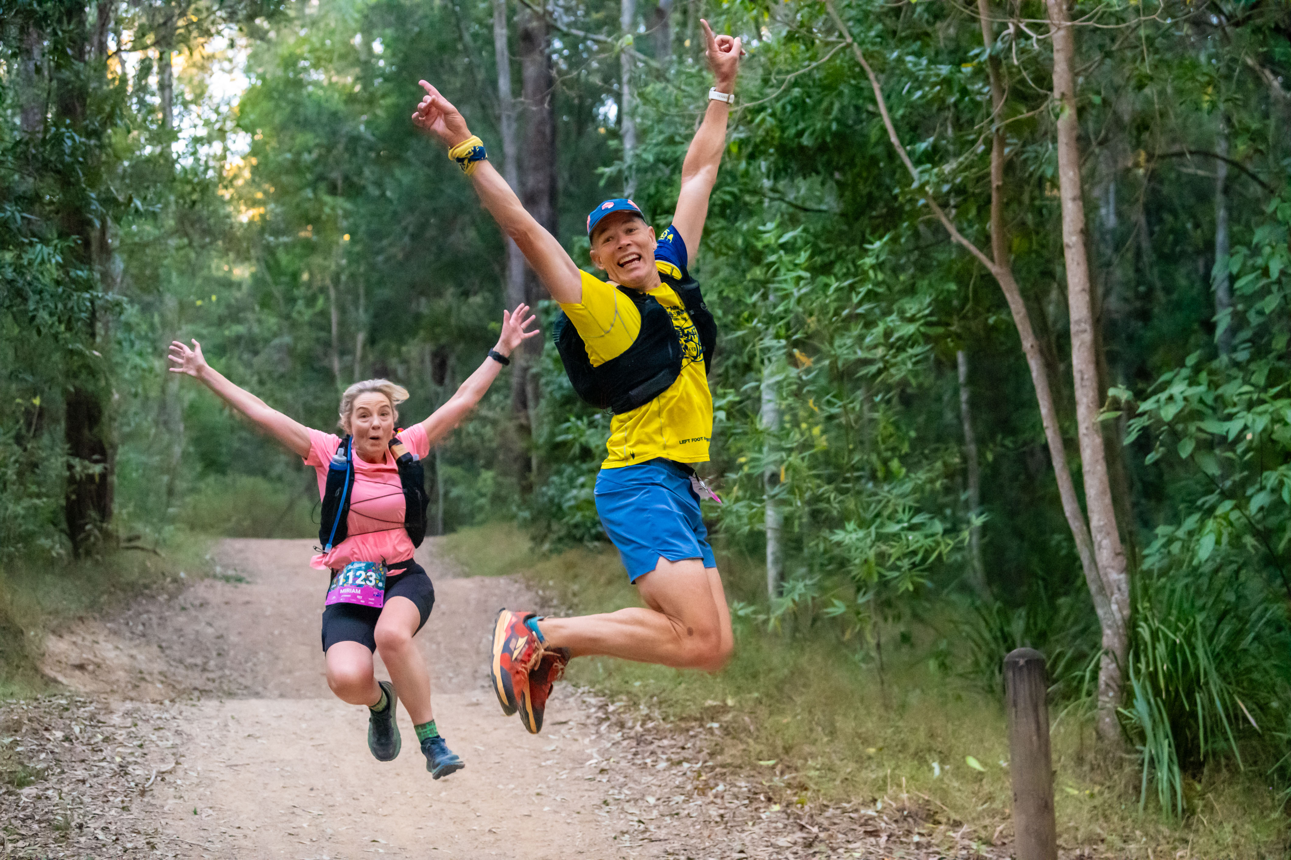 With an initial plan of running with Miriam (as it was her first 100k), I knew it was also a perfect pace for me to start out at. We also managed a jumpshot for the photographer.